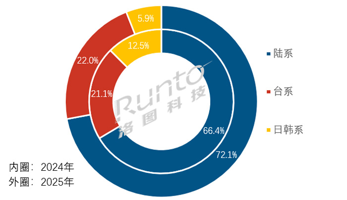 大陆系厂商份额达72%;日韩系大降51%