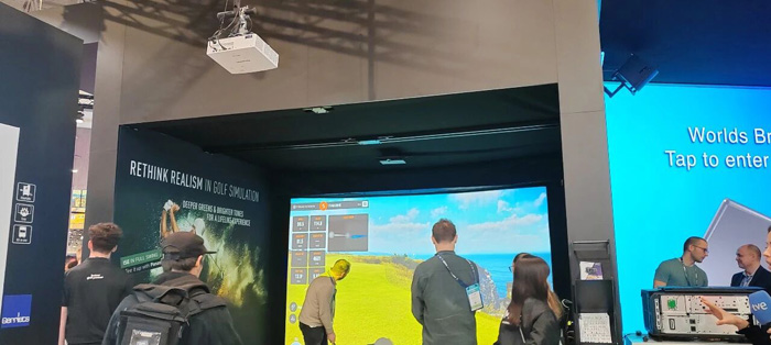 在ISE 2026松下展台中,参观者还有机会在松下投影技术驱动的高尔夫模拟器中一展身手。这是本次展会上,松下影像显示又一款首次发布的新产品——全新的4K液晶激光投影机PT-BAQ855C系列。