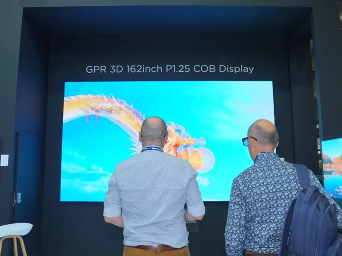 首款GPR 3D 162英寸P1.25 COB直显屏支持2D/3D显示一键切换,通过京东方COB直显精密像素和独家光配向技术,实现中心串扰低于1%、水平与垂直视角均超过170°的显示效果,适用于商业展示、医疗成像、教育娱乐等场景。