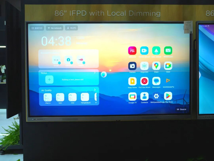 用于教育场景的京东方86英寸广视角电子白板,通过在显示屏表面贴合专用广视角光学膜,将亮度可视角从传统70度提升至120度,改善视角和眩光痛点,让前排同学也能多角度看到高清教学内容。京东方电子白板技术升级为促进教育公平提供了基础保障。
