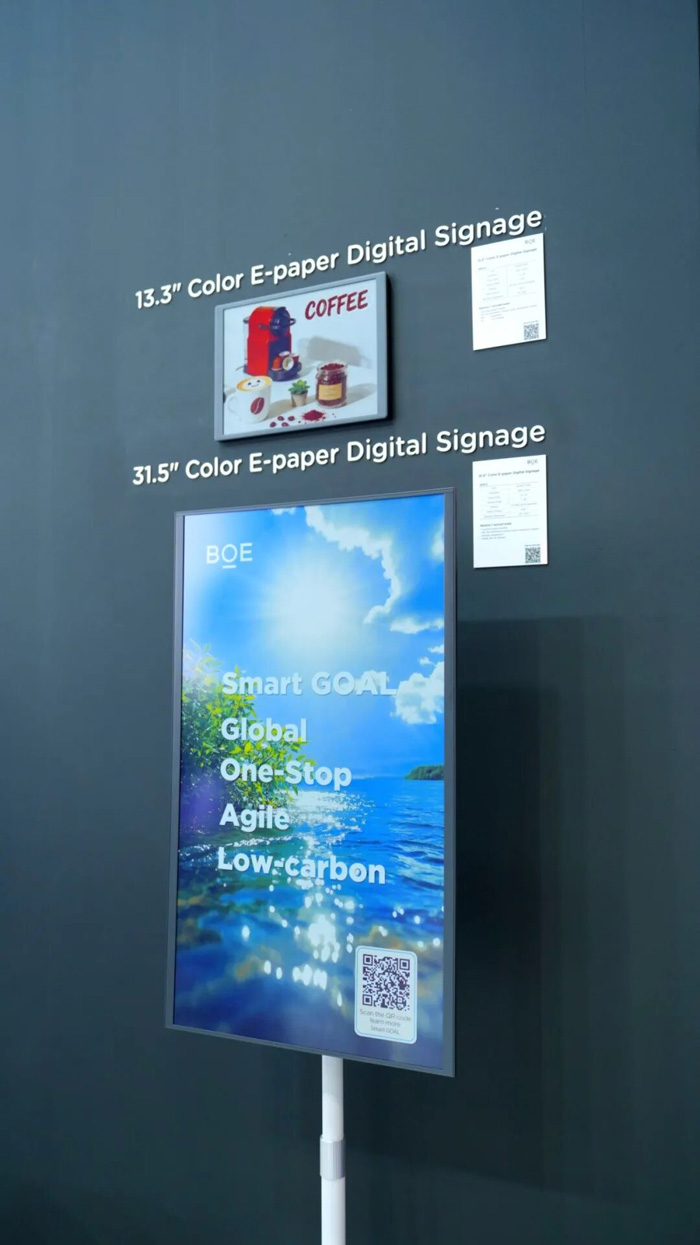 31.5英寸、13.3英寸全彩电子墨水屏支持多色显示,低功耗特性为商超货架堆头、商铺及电梯广告牌带来更为低碳环保的商显解决方案。