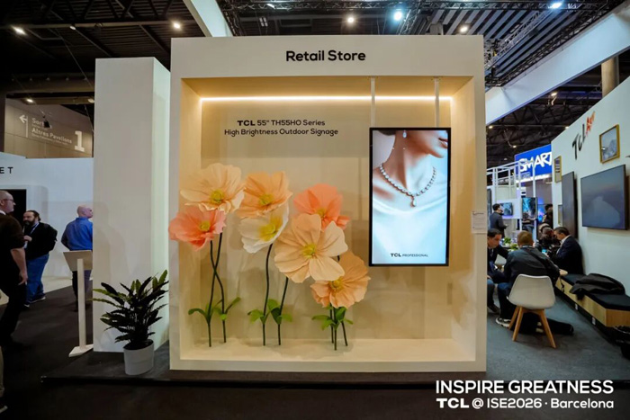 在成熟的室内数字标牌产品线之外,TCL 亦在ISE 2026带来了全新的户外数字标牌解决方案——TH55HO与TM55HO系列,进一步拓展其数字标牌在真实户外环境中的应用边界。