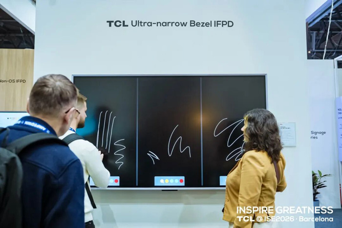 除商用显示产品外,TCL 亦在 ISE 2026 展示面向教育与企业场景的定制化IFPD(交互式平板显示)解决方案,体现其在定制化专业显示领域的持续投入。