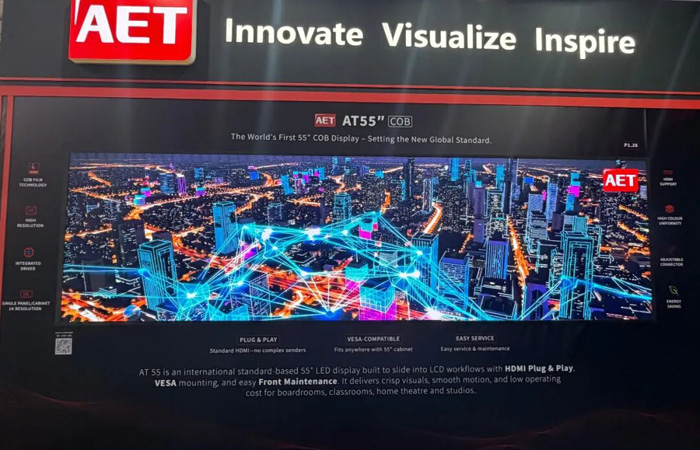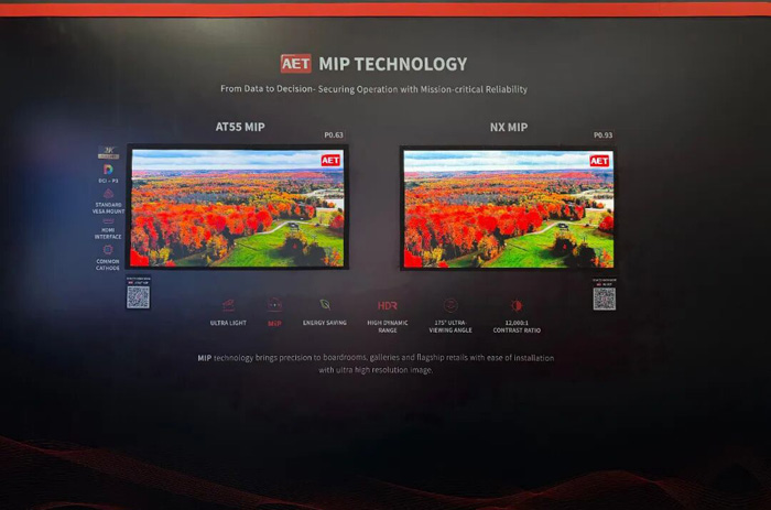 直接回应客户与伙伴对“更高性能、更优可靠性、更低能耗与维护成本”的核心诉求,本届ISE,AET阿尔泰全面展示基于“MIP+COB”双引擎的创新技术布局,清晰呈现公司基于技术优势打造的产品矩阵。