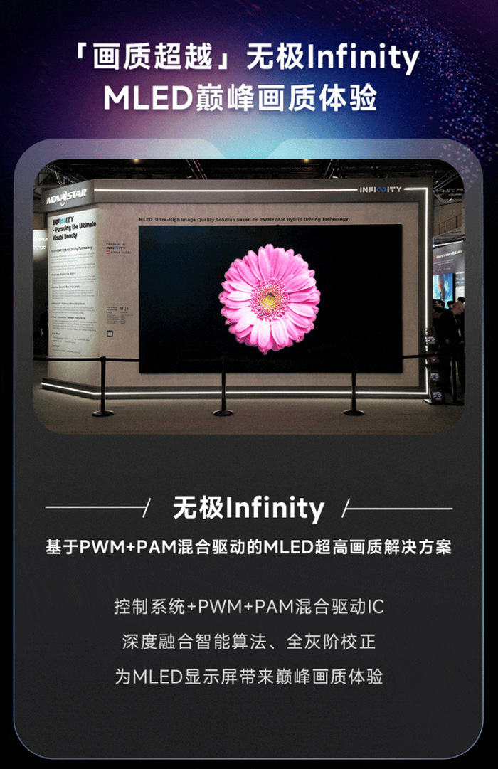 无极Infinity基于PWM+PAM混合驱动的MLED超高画质解决方案。