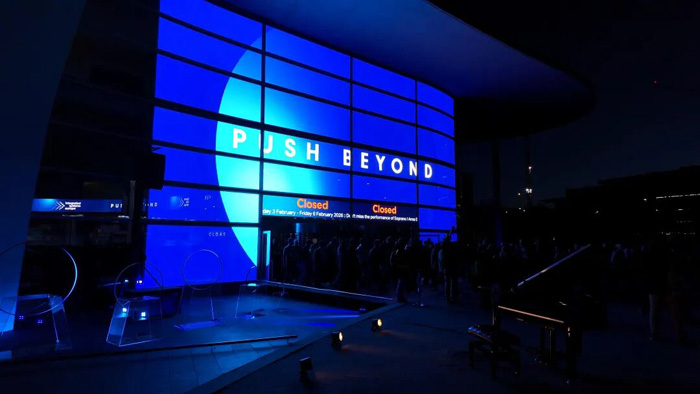 来自世界各地的专业观众、行业从业者与媒体代表齐聚南入口,共同观看这一场视听盛宴。正如ISE所强调,这场表演是技术、艺术与创意协作的实践。美矽微没有搭建舞台,而是让建筑本身成为表演空间。活动时间:2026年2月3–5日,每日18:30(PM 6:30),欢迎在现场的朋友前来观看。