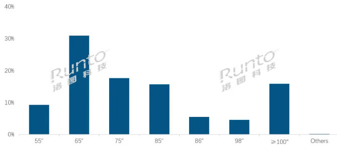 65寸是第一尺寸;泛百寸大屏份额高达20.6%