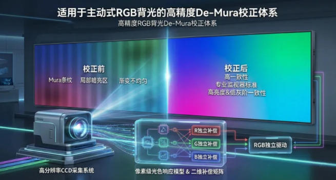 项目还创新构建了贯穿生产全过程的多模态检测与校正体系,通过层层筛查与补偿技术,显著提升了产品一致性,为RGB背光技术的规模化量产提供了坚实的技术保障和完整的质量控制路径。