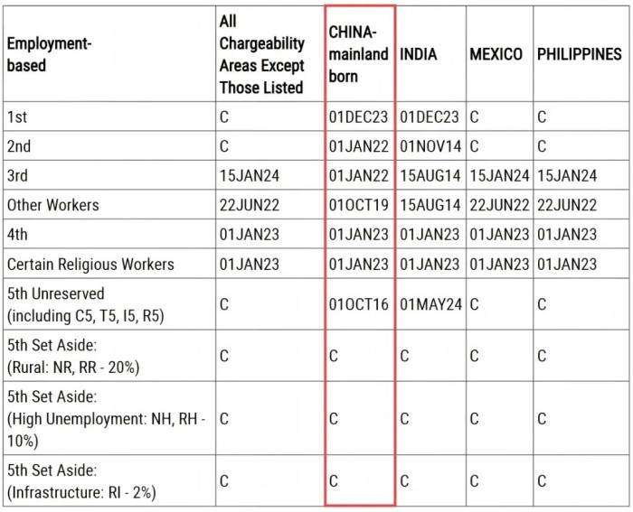 ✅职业移民表A:EB-1前进28天,其他类别均无变化,EB-5新政依旧无排期。