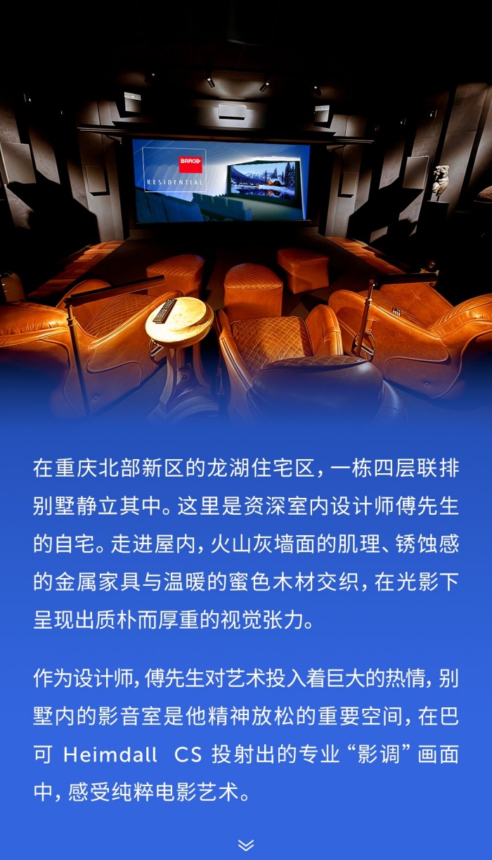 在这个由设计师品味与发烧友热情交织而成的影音室中,巴可 Heimdall CS 成为连接现实与电影艺术的桥梁。在重庆的繁华之外,业主构建了一个纯粹的观影空间,获得不亚于专业影院的画质体验。