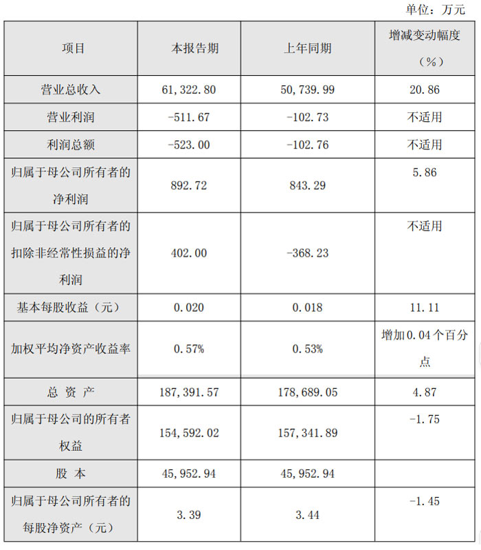 财务数据方面,2025 年公司实现营业总收入 6.13 亿元,较上年同期的 5.07 亿元同比增长 20.86%;营业利润为 - 511.67 万元,上年同期为 - 102.73 万元;利润总额为 - 523.00 万元,上年同期为 - 102.76 万元。盈利指标上,公司归属于母公司所有者的净利润为 892.72 万元,较上年同期的 843.29 万元同比增长 5.86%;归属于母公司所有者的扣除非经常性损益的净利润为 402.00 万元,较上年同期的 - 368.23 万元实现扭亏,同比增加 770.23 万元。每股收益方面,基本每股收益为 0.02 元,较上年同期的 0.018 元同比增长 11.11%;加权平均净资产收益率为 0.57%,较上年同期的 0.53% 增加 0.04 个百分点。
