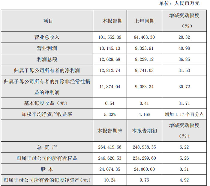 公告显示,2025 年公司实现营业总收入 10.16 亿元,较上年同期的 8.44 亿元同比增长 20.32%;营业利润 1.31 亿元,同比增长 40.98%;利润总额 1.26 亿元,同比增长 36.85%;归属于母公司所有者的净利润 1.28 亿元,同比增长 31.53%;归属于母公司所有者的扣除非经常性损益的净利润 1.19 亿元,同比增长 30.72%,扣除非经常性损益且扣除股份支付影响后的净利润 1.70 亿元,同比大幅增长 54.45%。盈利指标方面,公司基本每股收益 0.54 元,较上年同期 0.41 元增长 31.71%;加权平均净资产收益率 5.33%,较上年提升 1.17 个百分点。