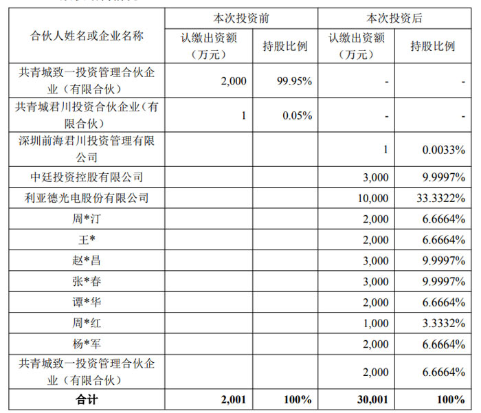 据悉,道盈盛远定向投资商业航天领域的非上市公司,本次目标认缴规模为 30001 万元。利亚德作为有限合伙人,拟以不超过 1 亿元自有资金认购该合伙企业 33.33% 的份额,本次投资完成后,公司将持有其 33.3322% 的认缴出资比例。