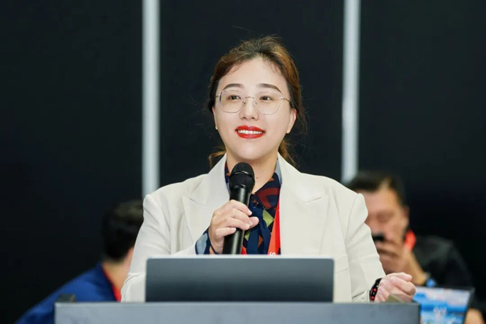 3月1日上午,利亚德励丰文化市场与生态合作部总经理珍妮向全球合作伙伴介绍利亚德集团领创全球的视效技术及励丰文化如何用新质生产力赋能文旅高质量发展。