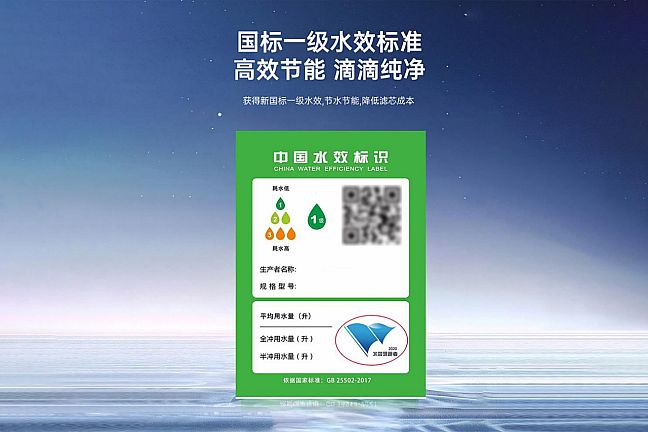 超一级水效:达到超一级水效标准,水利用率可达2.5:1,净水出水率67.8%,相比普通净水器(出水率约50%),能减少大量废水浪费,既符合绿色环保理念,又能降低家庭长期用水成本,按四人口家庭日均用水10L计算,一年可节省数百元水费。