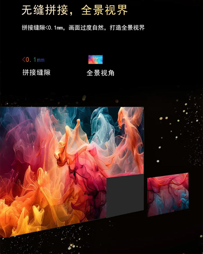 在画质表现上,该系列面板拥有 100000:1 超高对比度,让黑色更纯粹、白色更明亮,画面细节分明,层次感与立体感大幅提升;水平视角可达≥175°,多角度观看无画质衰减,满足多人多视角的观看需求。同时,产品搭载 HDR 高动态效果,P 系列与 M 系列刷新率均可达 7680Hz,高速动态画面下依旧清晰流畅,明暗过渡细腻自然;灰度等级上,P 系列提供 14-15bit 灰度,M 系列升级至≥16bit 灰度,为画面呈现带来更丰富的层次。此外,面板拼接缝隙 < 0.1mm,实现画面无缝过渡,轻松打造全景视界,满足超大型显示场景的搭建需求。