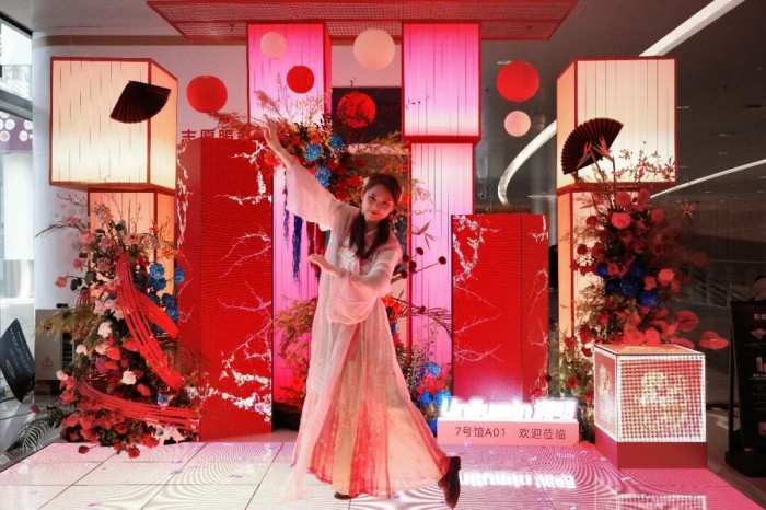 顺带一提,在会展中心南登陆大厅二楼入口处,洲明特别部署了一组融入新春文化意象的LED艺术装置,并与旁边的UTV SC 135一体机、中央走廊处的Uslim T75户外广告机,共同构建了全方位的品牌展示矩阵。