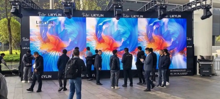 还没进入展馆,新视通就已经“出圈”了。位于南登录广场左侧的这块屏幕,成为本届ISLE展会第一个“打卡点”。