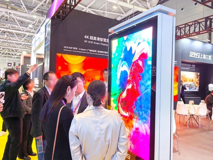 在创意显示与数字广告领域,三思同样推出极具竞争力的产品。KH 系列全息隐形屏凭借 95% 高透光率实现 “白天隐形夜晚惊艳” 的视觉效果,裸眼 3D 特性使其成为高端商圈的创意显示新选择;WPX 系列户外高亮广告机专为替换室外 LCD 打造,4500 超高亮配置可应对各类户外环境,55~99 寸尺寸全覆盖,还支持整机或 LED 部分灵活供货,满足不同数字广告场景的定制化需求。而 VIH-D 系列双面室内商显屏则以黑屏节能 90% 的优势脱颖而出,双面独立调光设计让其能全方位适配商场、机场、展馆等多元场景。