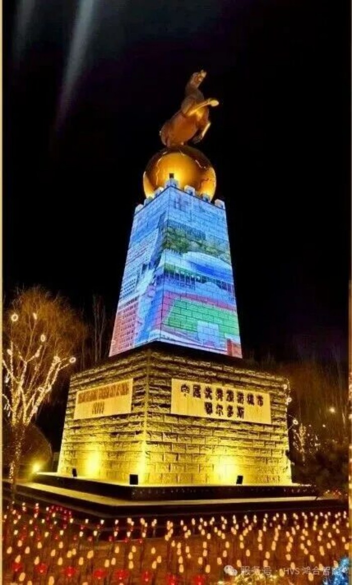 当夜幕低垂,鄂尔多斯达拉特旗的城市地标——骏马雕像,在光影中悄然“苏醒”。近日,三台鸿合激光工程投影机 HT-D103UA 正式入驻这片草原风情浓郁的土地,以精准而灵动的科技之光,为城市雕塑注入全新的视觉生命力,也让“中国优秀旅游城市”这块金字招牌,在夜色中愈加熠熠生辉。