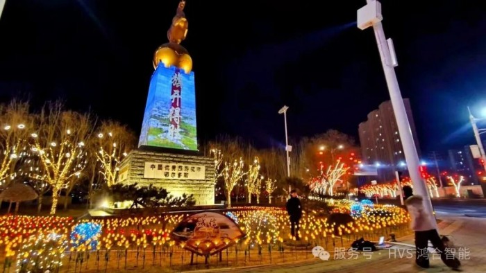 华灯初上,达拉特旗雕像前游人如织。光影流转间,历史与现代交融,传统与科技共生,鸿合投影以光为笔,在草原大地上书写文旅新篇,让鄂尔多斯的夜色,因科技的光影而更加璀璨。