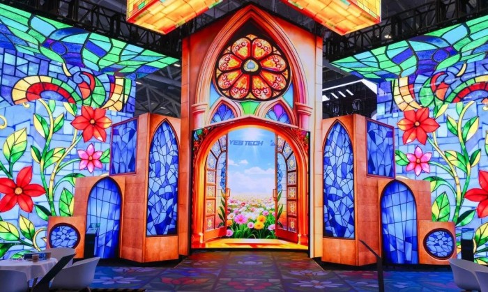 新亚胜展位YESphere沉浸式舞台,由新亚胜透明屏、天幕、异形屏与地屏共同构建,近300平米开放式创意空间融合MG、MU、Xtra、Rubik、MT等七大产品系列,打造出层次丰富、功能互联的立体舞台效果。展位内人流如织,共同见证创意舞美的魅力。