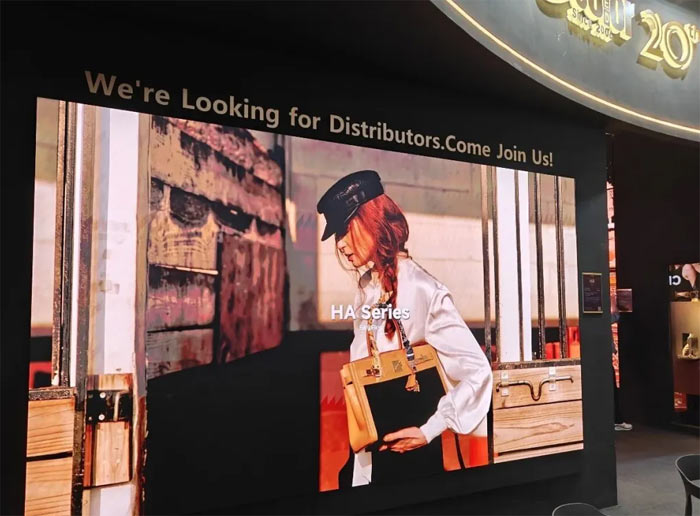 本次展会亦是深德彩子品牌 Skyflex 在国内市场的正式发布。Skyflex专注于商业显示与固装领域,以稳定性、能效表现与长期运行可靠性为核心,强调产品的全生命周期价值。带来HA-COB系列、ME系列、CM系列三大系列商显产品。HA-COB系列采用0.9mm点间距COB集成封装技术,面向高端会议空间与指挥调度场景。ME系列 面向户外大间距市场进行系统优化。在实现高亮度输出的同时,通过电源与驱动架构优化降低单位面积功耗,提高光效利用率,从而平衡显示效果与运营成本。CM系列聚焦高端零售与精品展陈空间,强化高对比度与广视角表现能力,在复杂环境光条件下仍能保持精准色彩还原与清晰细节呈现。