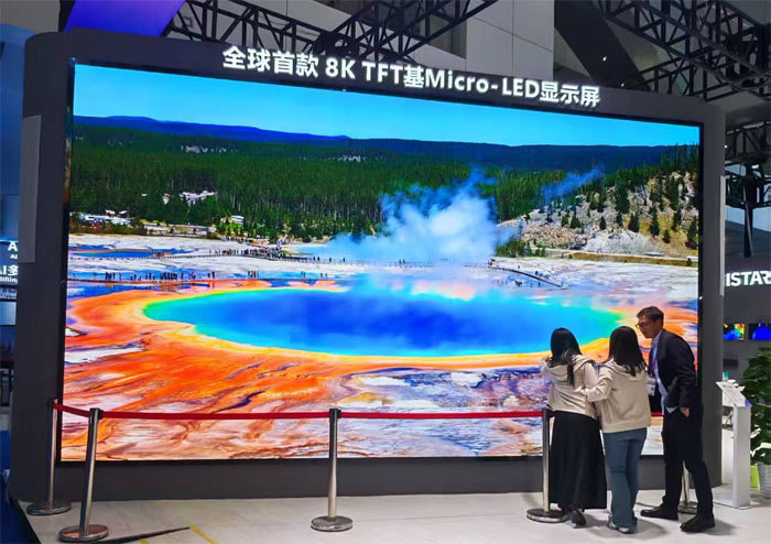 辰显光电全球首款8K TFT基Micro-LED显示屏,采用270英寸超大尺寸设计,像素间距仅0.7mm,搭载AM驱动技术实现像素独立控制,凭借Micro-LED自发光特性呈现纯粹黑场与高对比度,8K超高清分辨率可还原超3300万个像素细节,兼顾节能冷屏与高稳定性,适配专业影院、指挥调度中心等高端场景。