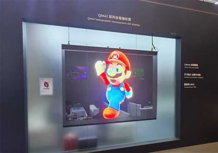 青松光电 QM41 系列全息隐形屏,以 “视界无边界” 为设计核心,重新定义透明显示的应用边界。该系列屏体采用 1.8mm 轻薄模组设计,兼顾轻盈与坚固,可实现尺寸随心拼、比例不受限,适配多元空间布局;凭借 > 90% 的超高通透率,既能呈现鲜活立体的全息视觉效果,又能让背景环境清晰可见,实现虚拟内容与现实场景的自然融合。无论是商业橱窗、展览展示,还是沉浸式互动场景,QM41 系列都能以 “隐形” 之态,为创意表达提供无限可能,让视觉体验突破传统屏幕的限制。