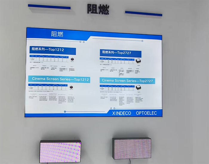 针对户外场景,信达光电推出的户外节能系列,在保证高亮度与全天候显示的同时,通过技术优化实现了更低的能耗,助力户外广告、智慧城市等场景的绿色升级;而阻燃系列(Top1212、Top2727 等)与 Cinema Screen 系列,凭借优异的阻燃性能与高对比度,满足了影院、公共空间等对安全与画质的双重严苛要求。