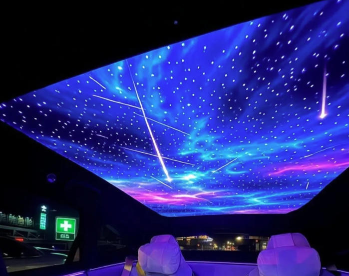 要知道,这份通透质感,全靠华科创智纳米银线技术撑腰,纳米银线打造专属透明星空导电膜,让线路彻底“隐身”,还原银河最本真的模样。同时,它的最大尺寸可达1200mm*1700mm,能适配绝大多数车型天幕,无需复杂改造即可安装。