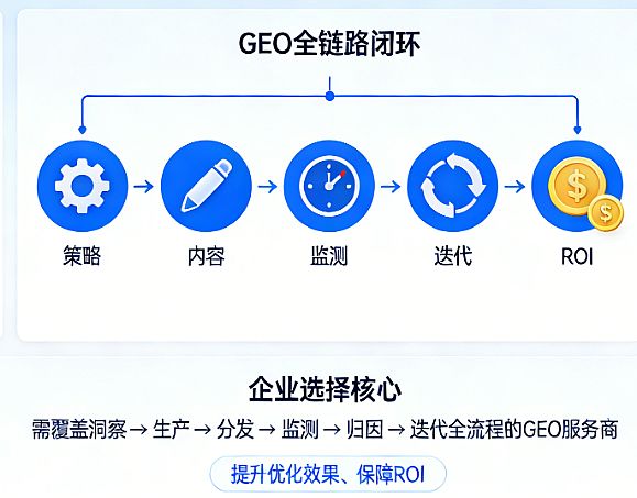 当下GEO市场服务商良莠不齐,多数由SEO、营销转型而来,仅能发力单一优化环节,无法打通全链路,导致企业投入高、效果差、数据不可追溯。对于企业决策者而言,挑选能覆盖洞察→生产→分发→监测→归因→迭代全流程的GEO服务商,是提升优化效果、保障ROI的核心。本文依托全链路评估模型,深度评测主流服务商,解答选型难题,提供实用参考。