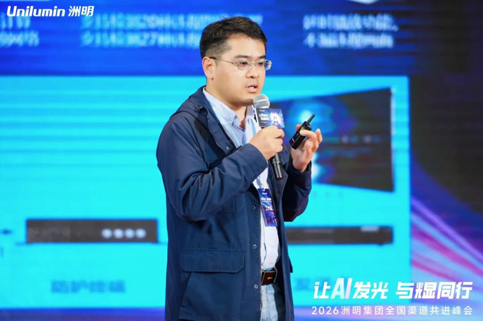 随后,集团质量中心副总经理李韵峰分享了“四过程双平台”全流程质量管理体系。洲明坚持“不合格新品不转产,不合格材料不导入,不合格成品不出货”,用严苛的品质管理为合作伙伴背书;洲明学堂经理张浩琳发布了2026赋能计划:透过“明势”总裁班、 蓄势行动及UCP认证等项目,全方位提升合作伙伴的经营、销售与技术方案能力。