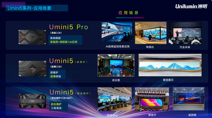 集团固装产品线总经理雷松从市场趋势切入,发布Umini5全系列COB+MIP产品,实现专显旗舰的高画质与节能平衡;同时以数字展陈Udesign SV全息屏、会议室UTV SC、影院Ucine、沉浸式CAVE空间方案等多系列、多场景的产品方案组合,助力伙伴领跑市场。