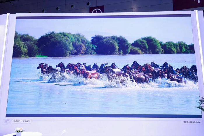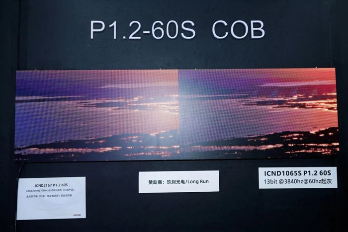 针对高端超高清显示、Mini/Micro LED 等前沿赛道,集创北方展出多款全新自研核心驱动芯片,通过多组对照展示直观呈现芯片性能优势。其中,ICND2167高性能恒流输出LED驱动芯片是针对 Mini/Micro LED 小间距显示场景深度优化的核心驱动方案,该芯片有效解决了小间距显示中刷新率不足、灰阶表现受限等行业痛点。它支持一级刷新率 1920Hz,最高可实现 15360Hz 超高刷新率,搭配 18bit 全灰阶输出,在刷新率与灰度表现上实现了跨越式升级,让动态画面更流畅、色彩层次更丰富,为高端控制室、虚拟制片等对画质与稳定性要求严苛的专业场景提供了可靠的技术支撑