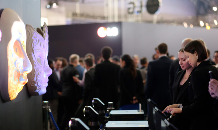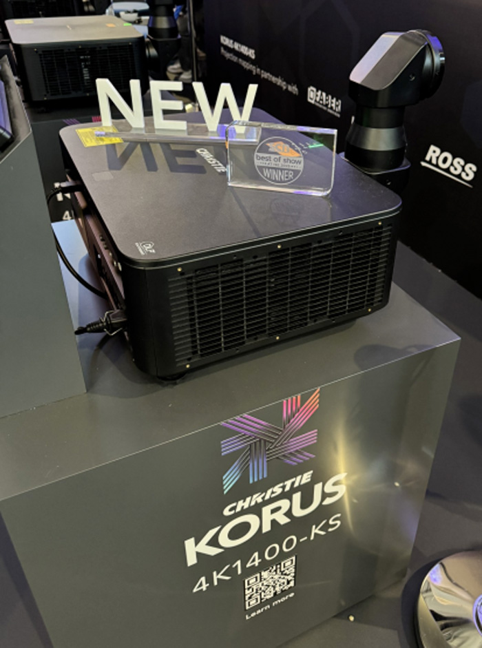 在 ISE 2026 展会上,科视展位上最受欢迎的体验之一,是三款面具的互动投影映射展示。科视邀请来宾为威尼斯面具、印度面具及中国戏曲面具设计投影图案。全新 Korus 系列投影机与 Ross Video 媒体服务器共同为三款面具赋予色彩。