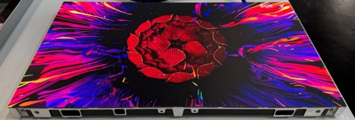 高端显示领域,现场展出的室内COB P0.9 MLED显示产品,极大优化了常规MLED产品模块化拼接带来的视觉痛点,800nit高亮度、13bit高灰阶呈现细腻画质,充分满足工业级显示需求,3840Hz超高刷新率更能纵享极致丝滑流畅的画面;值得一提的是,该产品采用独特的双链路供电方案,极大优化了无效功耗,使整机在600nit高亮度下功耗仅23W,呈现细腻画质的同时,更带来卓越的节能低碳表现。