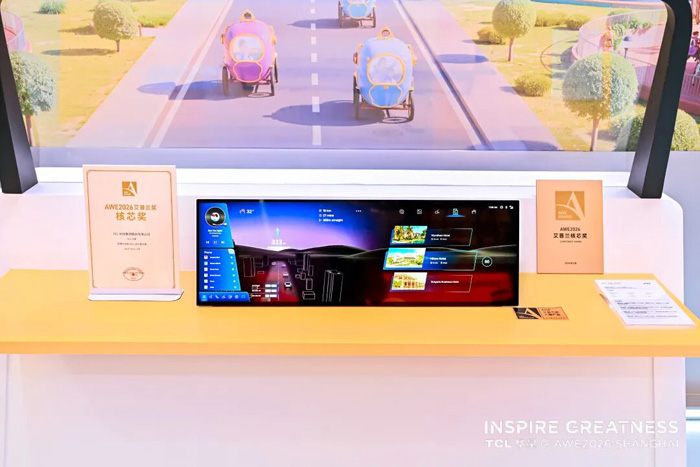 TCL华星凭借对消费者场景的深刻洞察与极致的显示技术打磨,在AWE2026上赢得了行业的权威认可。旗下超薄窄边框Mini-LED车载显示 (29.8") 与全球最薄LCD桌面显示 (27")两款产品荣获AWE2026艾普兰核芯奖,充分印证TCL华星以核心技术驱动显示体验升级的创新实力,持续引领行业技术方向与用户体验升级。