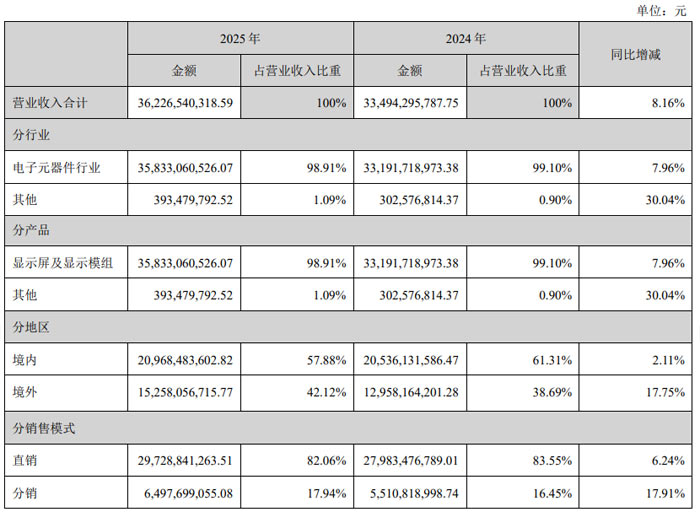 销售区域方面,境内实现营业收入 209.68 亿元,同比增长 2.11%,占总营收的 57.88%;境外实现营业收入 152.58 亿元,同比增长 17.75%,占总营收的 42.12%,境外市场表现亮眼。销售模式上,直销收入 297.29 亿元,同比增长 6.24%;分销收入 64.98 亿元,同比增长 17.91%,多元销售渠道协同发展。