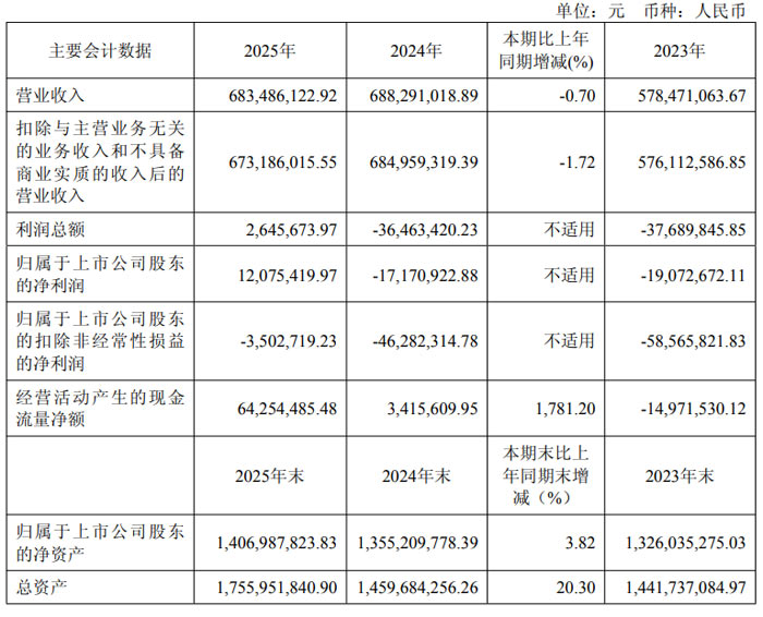 近日,深圳市必易微电子股份有限公司(股票简称:必易微,股票代码:688045)发布 2025 年年度报告。报告显示,公司全年实现营业收入 6.83 亿元,同比下降 0.70%;归属于上市公司股东的净利润 1207.54 万元,同比实现扭亏为盈;归属于上市公司股东的扣除非经常性损益的净利润 - 350.27 万元,亏损幅度较上年大幅收窄 4277.96 万元;基本每股收益 0.17 元。