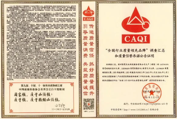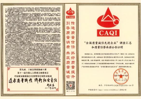 在中国质量检验协会2026年 “3・15”主题活动中,雷曼光电凭借过硬品质、全链条管控与诚信经营,荣获全国产品和服务质量诚信承诺企业、全国质量诚信先进企业、全国行业质量领先品牌、全国质量检验稳定合格产品四项权威认证,彰显 LED 显示“中国智造”标杆实力。