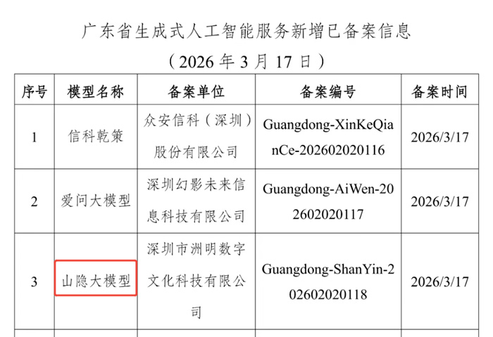2026年3月17日,由洲明集团旗下全资AI子公司——洲明数字文化自主研发,“中华优秀传统文化大模型”(山隐大模型)成功完成生成合成类算法+生成式人工智能服务的“双备案”。
