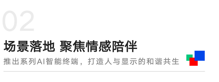 我们观察到,在快节奏的现代生活中,人们对情感陪伴与居家健康的关注日益增加。因此,我们选择深入场景——以“山隐”等AI模型作为大脑,推出陪伴智能手办、智能全息仓、智慧大路灯、智能数字人盒子等多款“智能对话终端”,并持续拓展内容生态,打造人与显示的自然交互。