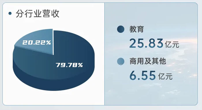 2025 年,受全球市场需求波动、教育行业存量主导等因素影响,公司核心教育板块实现收入 25.83 亿元,占营业收入比重 79.78%,同比下降 15.35%,但仍为公司营收基石。值得关注的是,商用及其他领域表现亮眼,实现收入 6.55 亿元,占比 20.22%,同比大幅增长 38.37%,成为拉动公司增长的关键动力。