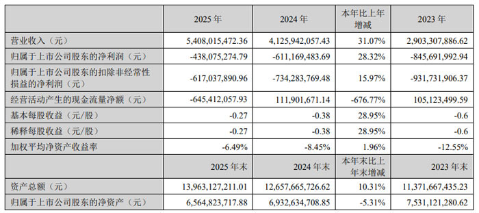 京东方华灿光电股份有限公司(股票代码:300323,简称 “华灿光电”)2025年报显示,公司全年实现营业收入 54.08 亿元,同比增长 31.07%;归母净利润为 - 4.38 亿元,较上年同期减亏 1.73 亿元,经营状况呈现稳步改善态势。