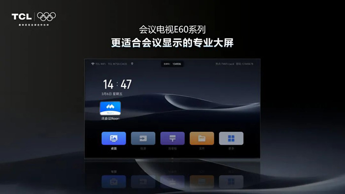 此外,TCL作为会议电视行业标准牵头者,会议电视E60系列通过创新的AI防眩护眼技术与AI办公画质优化算法,大幅提升了在复杂光线下的文字与图表清晰度,带来更适合办公场景的显示效果。此外,其自研的TCL Share+投屏软件和真4K免驱投屏器可实现真4K秒级无线投屏,支持手机、PAD、电脑多端免入会共享与反向操控,配合双频双WiFi四通道高性能模块,确保了“一点即投”的便捷连接与跨屏互动体验。