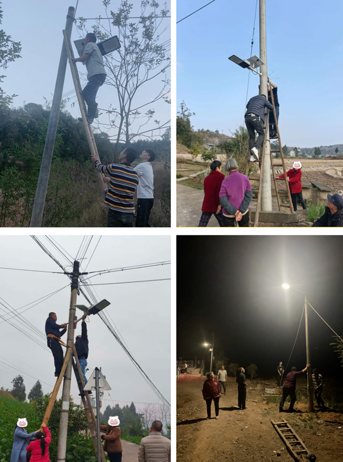 “因路灯装在村公路上,邻居们全都来帮忙了,有人负责组装路灯,有人找工具,有人爬梯,七手八脚,齐心协力地装路灯,都很高兴。”