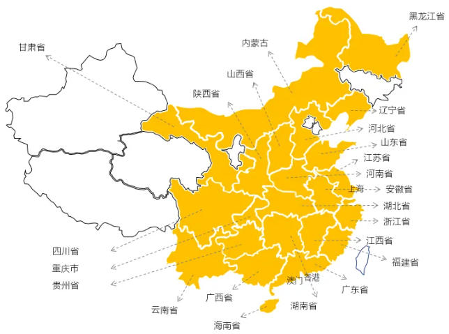 图注:黄色代表已点亮的区域,不包含港澳、上海数据