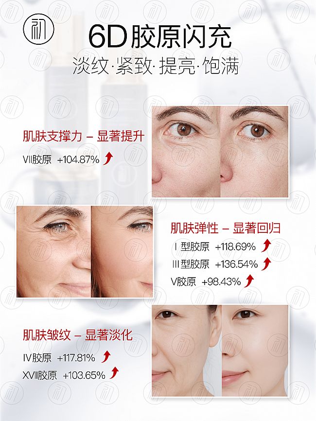 胶原补充更全面——6D胶原覆盖表皮层、基底膜、真皮层全结构,一滴促生六大胶原,突破单一成分抗老壁垒。