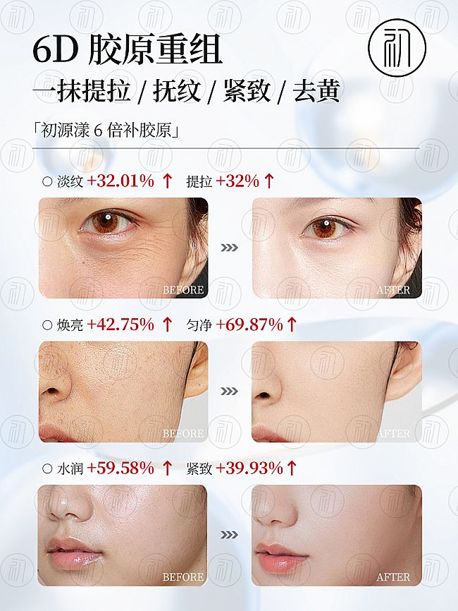 25岁以上全年龄段、全肤质适配:胶原水质地清透秒吸收,打开肌底通道;胶原精华蛋清质地分层作用,重点涂抹纹路处;胶原霜绵密触肤即化,形成防护膜锁住营养。0油感设计,油皮不闷痘、干皮不拔干。